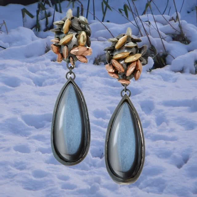 Beautifully crafted, highly individual, inspired by leaf forms. The Folium collection uses an open structure giving both lightness and delicacy, set with leaf shaped marquis gemstones. This new collection incorporates contrasting colour golds and silver. All diamonds are sourced in their natural colours.