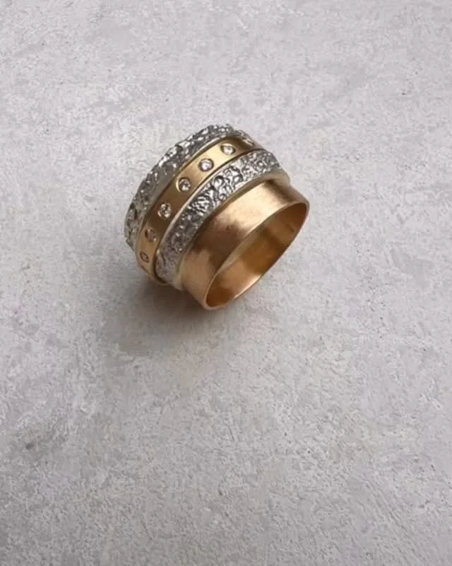 Unique ring designs which have been awarded a design number with the Intellectual Property Office, these rings come apart allowing the moving centre band to be worn separately, interchanged or worn in a different combination with the outer rings. These rings do make perfect wedding and engagement rings, the engagement ring can be made larger just before the wedding! Or a special ring that can be added to with a new centre band. See more here
